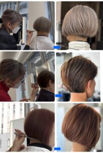 特に襟足のデザインはお客様自身には見えにくい箇所ではありますが、周りの方々からはしっかり骨格として見えますので、収まり良く綺麗におしゃれにデザインする事を心がけています。