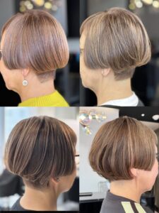 サイドの長さや幅を変化させる!!耳たぶが見える長さと耳半分の長さでは横から見える変化は少しでも、前から見えるお顔の似合わせにはデザインの変化はあります。