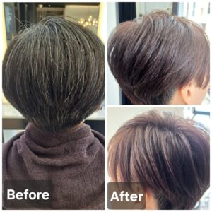 こちらのお客様は①の白髪ぼかしでやわらかな髪色になったお客様。
